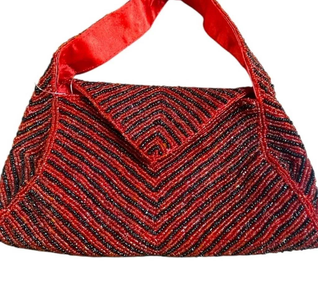 This stunning art deco red and black beaded envelope style handbag is perfect for a night out. Handm... Show more