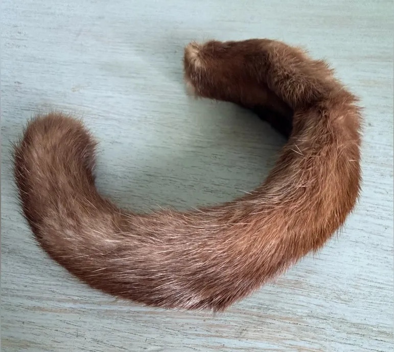 Vintage 1950a genuine mink fur headband in a rich brown tone with classic mid-century styling. This... Show more