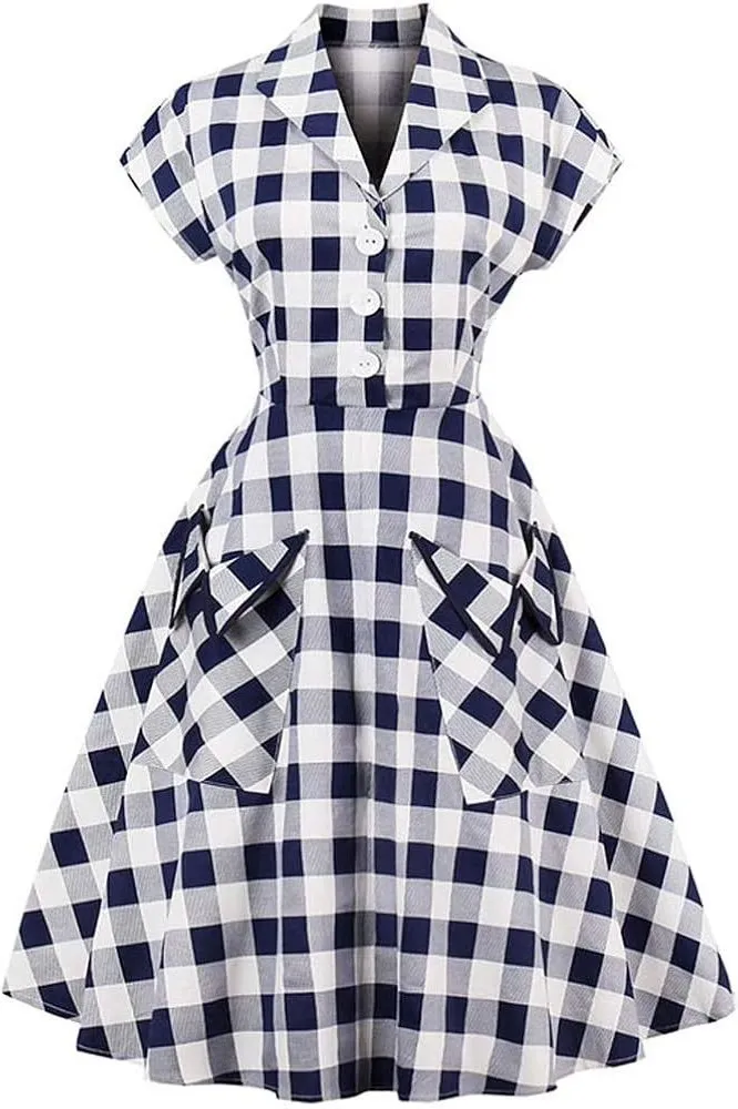 Embrace timeless style with this classic navy and white checkered dress. Perfect for any occasion, t... Show more