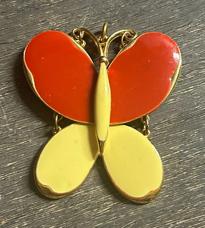 Vintage 1960s Signed Art (Arthur Pepper) Articulted Butterfly Pendant Red - $15 - From Kayla