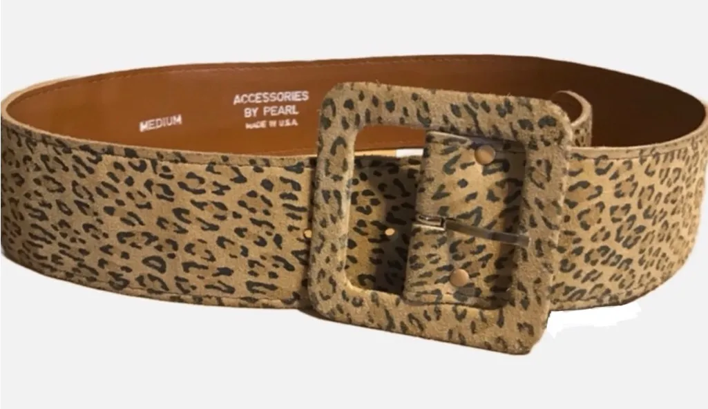 This listing is for the belt pictured. Accessories By Pearl -vintage 1980's animal print -tan and black -suede front bonded leather back -made in USA Belt is marked size medium fits (27-31 inches) --please use measurements provided in photos for fit determination; Size tags alone, are not a reliable source. Item is free of stains or holes. General wear from age and use. Preowned items (especially vintage pieces) are subject to any minor imperfections which come with an article of clothing that has been washed and worn; these signs of wear generally include light pilling or fuzzing, loose threading or wrinkling. Some listings may not include these issues, but as a general disclaimer, please be aware it is possible. Unless indicated, there is no major damage to a piece. To mitigate the cost of the items and avoid any issues customers may have with allergies, we leave desired cleaning to the new owners.