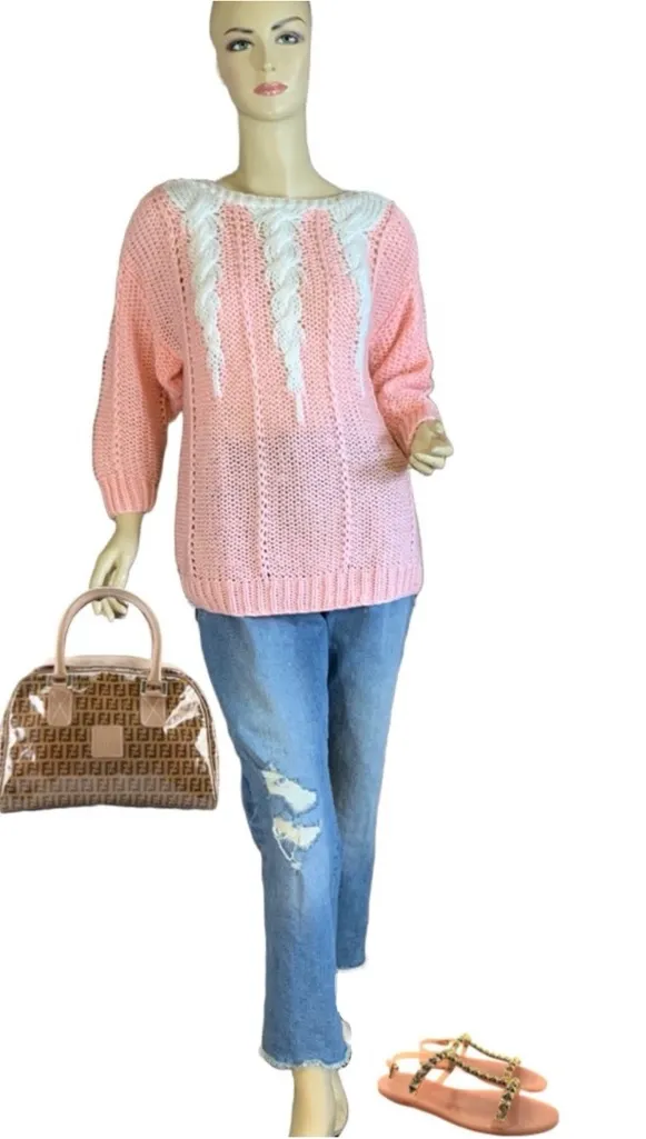 This listing is for the sweater pictured only. Deb -pink and light cream -vintage 1980's -hand knitted -pull over -unlined -crew neck -loose fit Sweater is marked size small (40 inch bust) --please use measurements provided in photos for fit determination; Size tags alone, are not a reliable source. Item is free of stains or holes. Preowned items (especially vintage pieces) are subject to any minor imperfections which come with an article of clothing that has been washed and worn; these signs of wear generally include light pilling or fuzzing, loose threading or wrinkling. Some listings may not include these issues, but as a general disclaimer, please be aware it is possible. Unless indicated, there is no major damage to a piece. To mitigate the cost of the items and avoid any issues customers may have with allergies, we leave desired cleaning to the new owners.