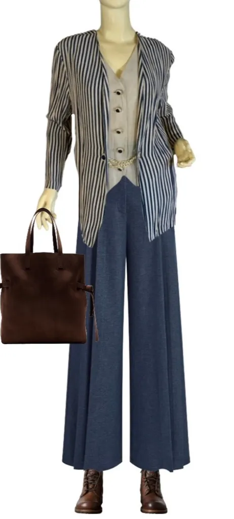 This listing is for the blazer top pictured only. Dress Savvy -beige and navy blue -one piece blazer with vest and chain look -button down front -v neck -vintage 1980's -gold tone hardware Blazer is marked size 10P (42 inch bust) -please use measurements provided in photos for fit determination; Size tags alone, are not a reliable source. Item is free of stains or holes. Preowned items (especially vintage pieces) are subject to any minor imperfections which come with an article of clothing that has been washed and worn; these signs of wear generally include light pilling or fuzzing, loose threading or wrinkling. Some listings may not include these issues, but as a general disclaimer, please be aware it is possible. Unless indicated, there is no major damage to a piece. To mitigate the cost of the items and avoid any issues customers may have with allergies, we leave desired cleaning to the new owners.