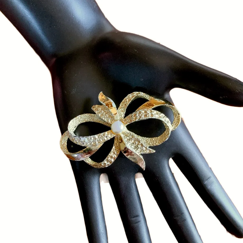 This listing is for the brooch pictured. Vintage Gerry's signed -gold tone metal (actual metal composition is unknown) -faux pearl accent - Please refer to pictures with measurements for sizing information. Areas of gold tone finish loss: please see photos. Preowned vintage jewelry may contain minor markings and imperfections throughout. All parts are in working condition. Cleaning of piece is left to new owner.