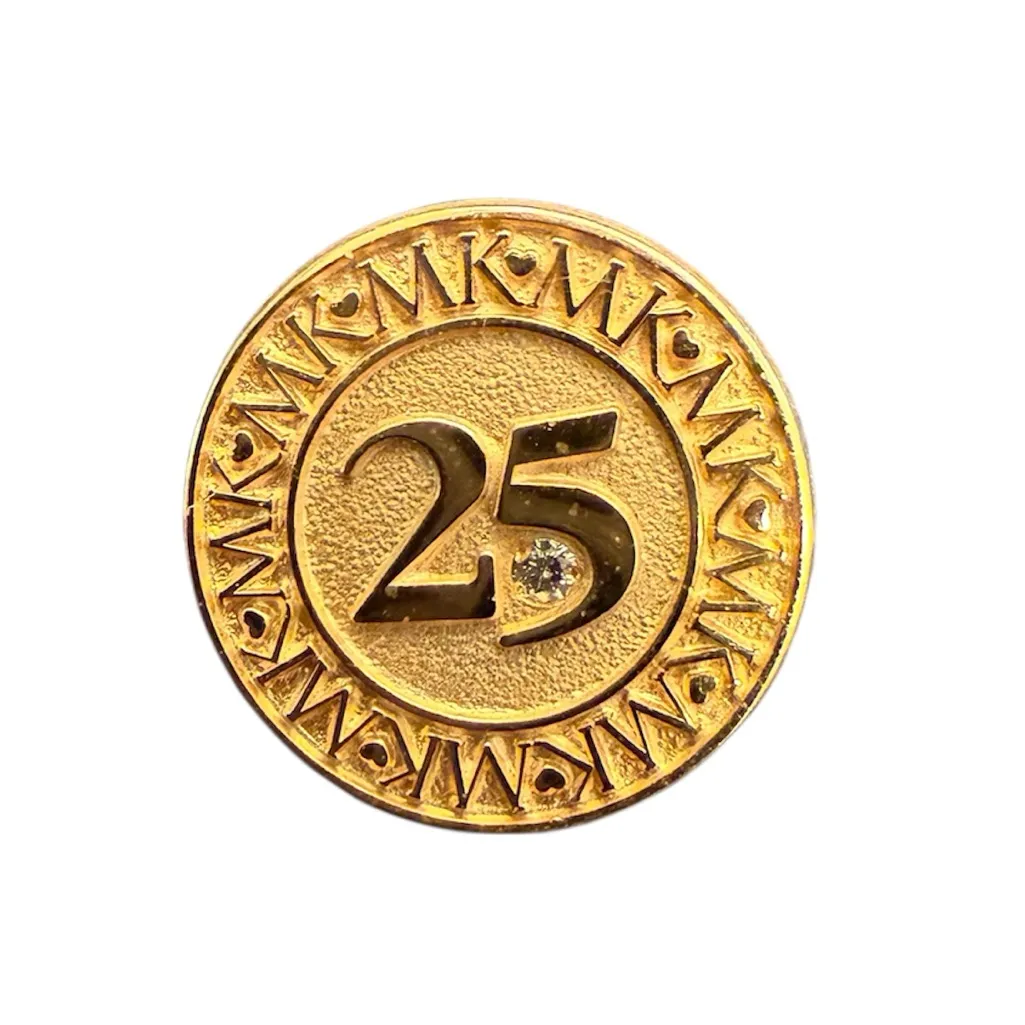 Vintage 1988 Mary Kay 25 Years Faux Diamond Chip Gold Tone Lapel Pin Round - $15 - From Allison