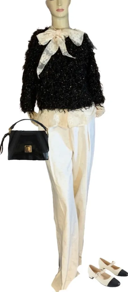 This listing is for the sweater pictured only. Gantos -black and gold -crew neck -fuzzy eyelash fri... Show more