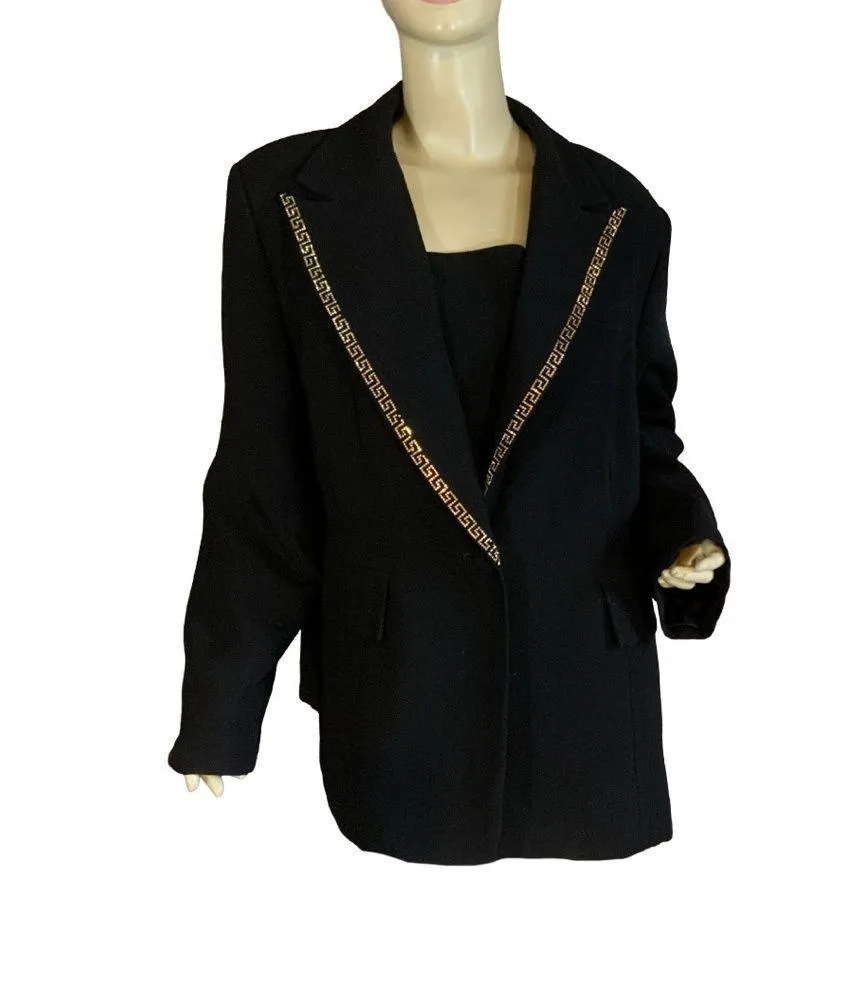 This listing is for the blazer pictured only. Giovanna -vintage 1990's -black with gold Greek Key... Show more
