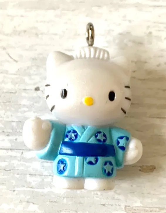 Vintage 2001 Sanrio Gotochi Hello Kitty Netsuke Pendant Charm Blue Kimono White - $22 - From Lark
