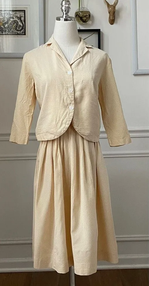 Mix and match with this two piece vintage 50s yellow and white seersucker stripe skirt and top set.... Show more