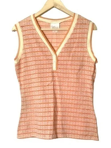 Vintage 60s/70s Jantzen v neck peach pointelle sleeveless stripe‎ top L Pink Size L - $24 - From Candice
