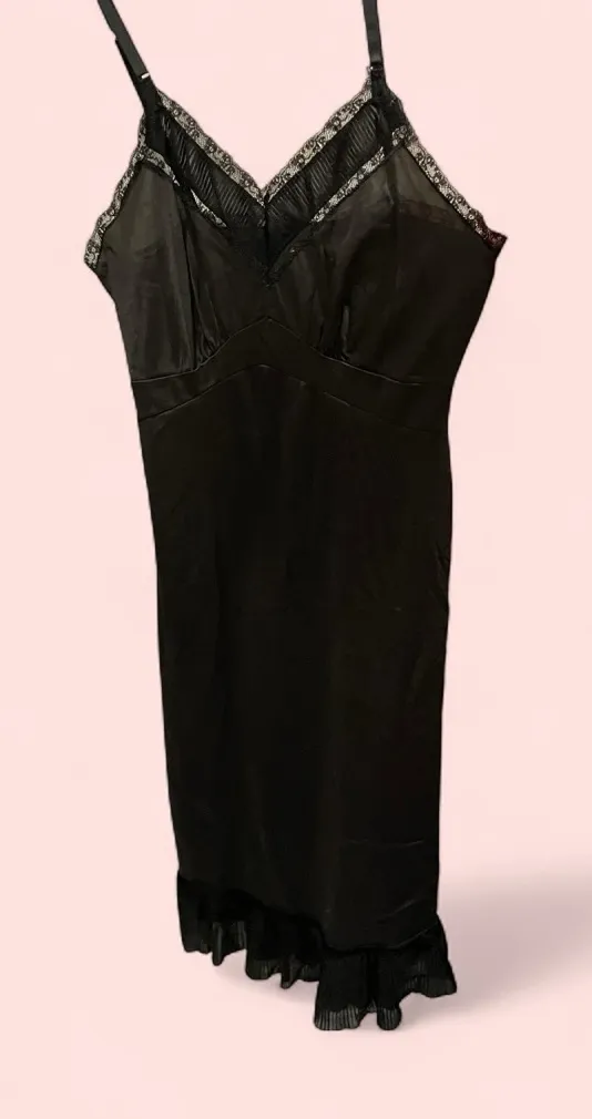 Vintage 60’s black siren whimsigoth slip dress lace pleated hem - $29 - From Ruth