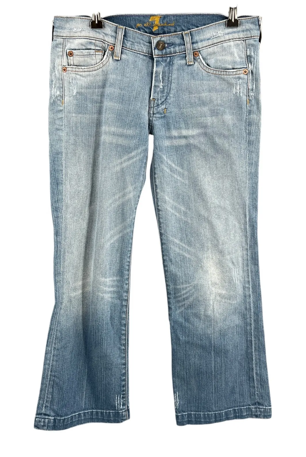 Rare 7 For All Mankind Stove Pipe jeans designed by Jerome Dahan, made in the USA. Light wash denim... Show more
