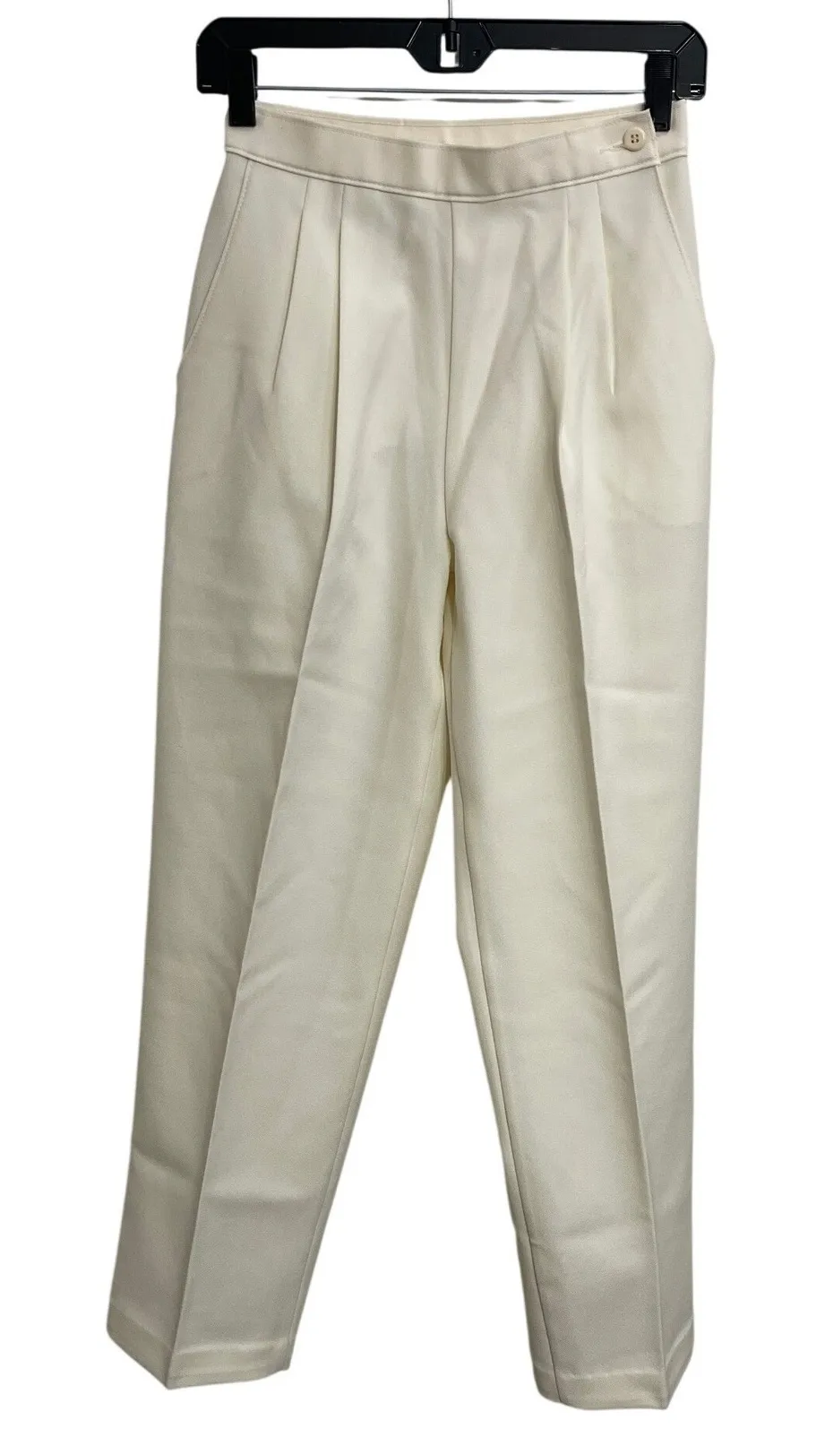 Keywords: pleated pants, tailored trousers, high rise, cream trousers, classic, business casual, off... Show more