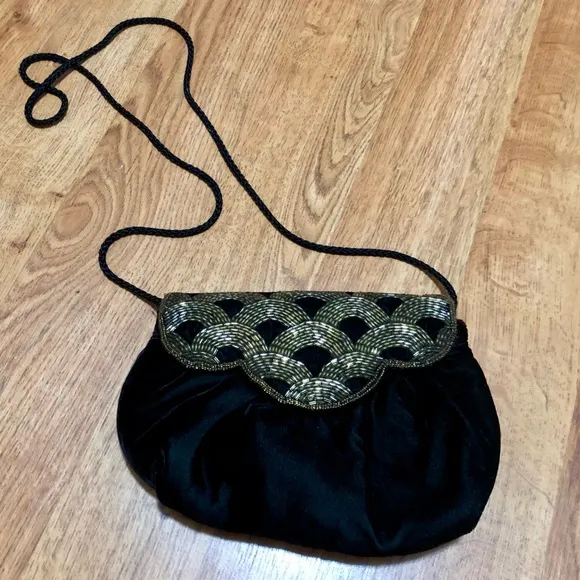 Soft fabric velvet feel and texture Gold beads on the front Art Deco 1920s flapper style Inside has... Show more