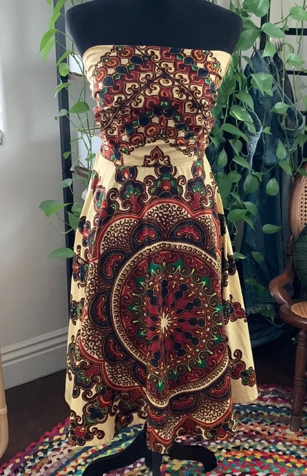 Handmade. Multi color boho Mandala batik print. Convertible strapless dress. Knee or midi length dep... Show more