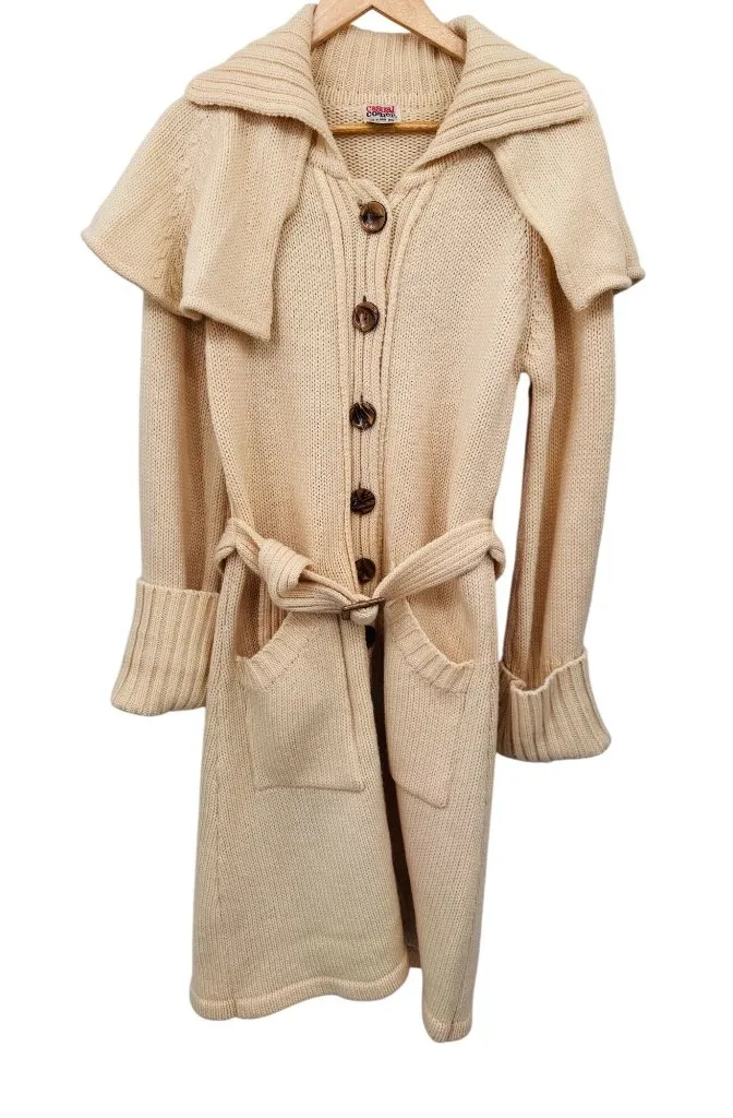 Vintage 80s Maurada Cardigan Sweater Bishop Sleeve Old Money Womens sz Large Ribbed Acrylic Wool Blend Beaded Lace Upper Cable knit trim Lined Approximate Measurements Laying Flat Across: Chest: 23 inches Length: 33 inches Sleeve: 25 inches Excellent preowned condition - no rips, stains, or tears. Seller Notes: -Same/Next Business Day Shipping -Smoke Free & Pet Friendly Home