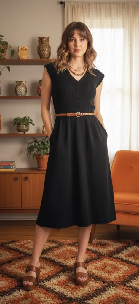 Vintage 70s St. John Knit Dress Crochet Cottagecore‎ Cap Sleeve Pockets Black Size 2 - $200 - From Tiffany