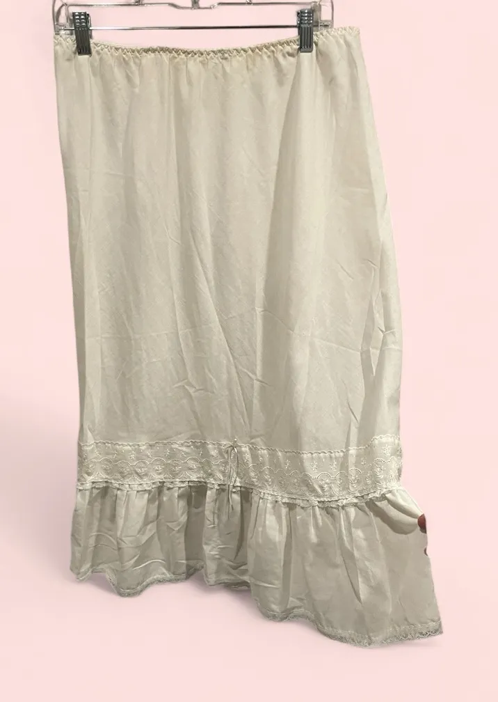 Vintage 70’s St. Michael UK white slip skirt lace ribbon trim elastic waist. Probably supposed to be... Show more