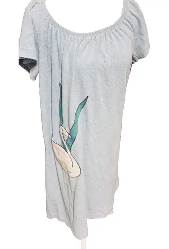 Vintage 70s Terry Cloth Robe Kaftan House Dress Swan Pocket Lounge XL Blue gently used condition --... Show more