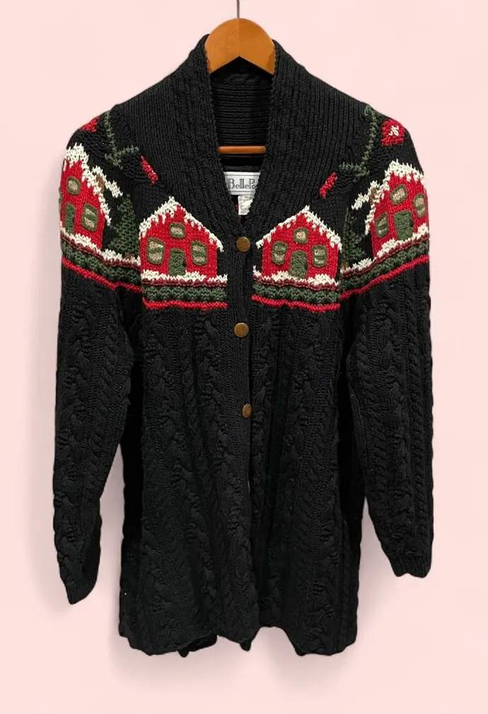 . Very heavy sweater. GUC. Size large. Very warm and cozy. Brand is Belle Pointe. Cottagecore. Measurements taken laying flat are approximately: Pit to pit: 25” Length: 33” Sleeve: 25”