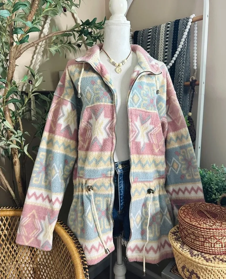 🔥 Vintage 80s/90s G4000 Southwestern Aztec Fleece Jacket 🔥 Size Small A true retro gem! This vintage fleece zip-up jacket features: * Bold Southwestern / Aztec geometric print * Cozy and warm fleece material * Full front zip with front/side pockets * Classic 80s/90s style that’s perfect for layering * Adjustable cinch tie waist 🌀 Size Small can also fit medium 🌀 Good vintage condition. There is wear as shown in pics. Perfect for collectors, vintage streetwear fans, or anyone looking to add a statement piece to their fall/winter wardrobe. #Vintage90s #Vintage80s #Southwestern #AztecPrint #RetroFleece Approx measurements lying flat Pit to pit 23” Length 31”
