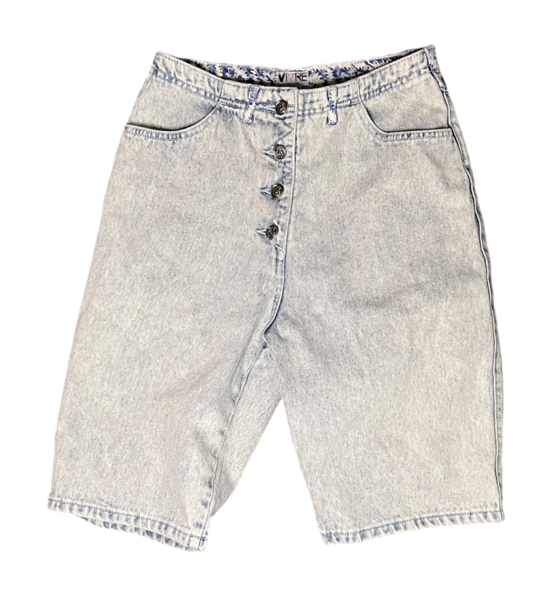 Brand: Vivre Features: High Rise, Button Fly, Embroidered Back Yoke, Back Patch Pockets, No Stretch, Bermuda Length Size: 7 Waist: 13.15” across (NO stretch) Hips: 18” across Rise: 12” Inseam: 10.25” Condition: Excellent vintage condition, no flaws noted Age: Late 80s to early 90s Color: Light Wash Fabric: 100% Cotton Care: Machine Wash Where I Was Made: Hong Kong Expected Ship Time: 2–3 BUSINESS days Reasonable offers always welcome. Comment any questions. vintage denim, 90s shorts, bermuda core, coquette casual, mall goth lite, retro yoke detail, summer core, indie sleaze, soft grunge, y2k revival