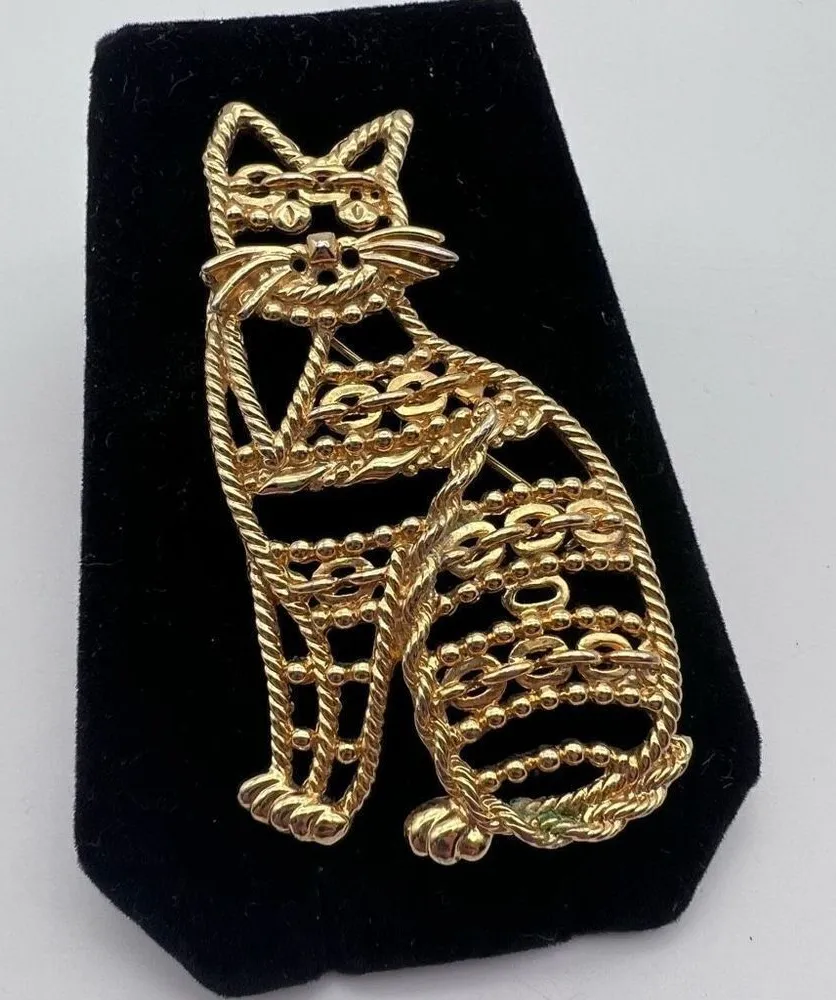 Vintage 80s AJC Unisex Gold Tone Cutouts Open Pin Filigree Cat Kitten Brooch Pin Brand: AJC Departm... Show more