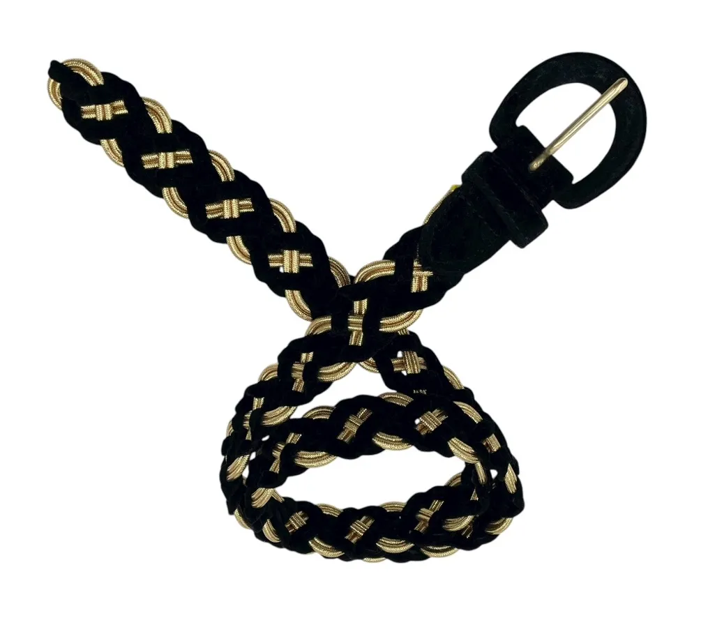 Vintage Amanda Smith Belt Black velvet with gold elastic braided belt Adjustable buckle closure S... Show more