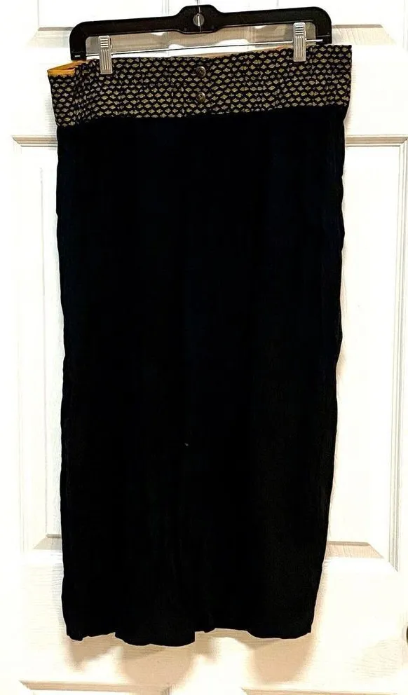 Elevate your wardrobe with this stunning vintage black midi skirt from A.c Sport. Crafted with intricate button and embroidered accents, this skirt boasts a luxurious and elegant look that is perfect for any occasion. The skirt features a comfortable elastic waistband that ensures a flattering fit for sizes 18 and plus. This skater-style skirt is perfect for any fashion-forward woman who wants to add a touch of metal and vintage flair to her wardrobe. The skirt is made with high-quality materials and is perfect for those who want to make a statement with their fashion choices. Add this skirt to your collection today and step out in style!