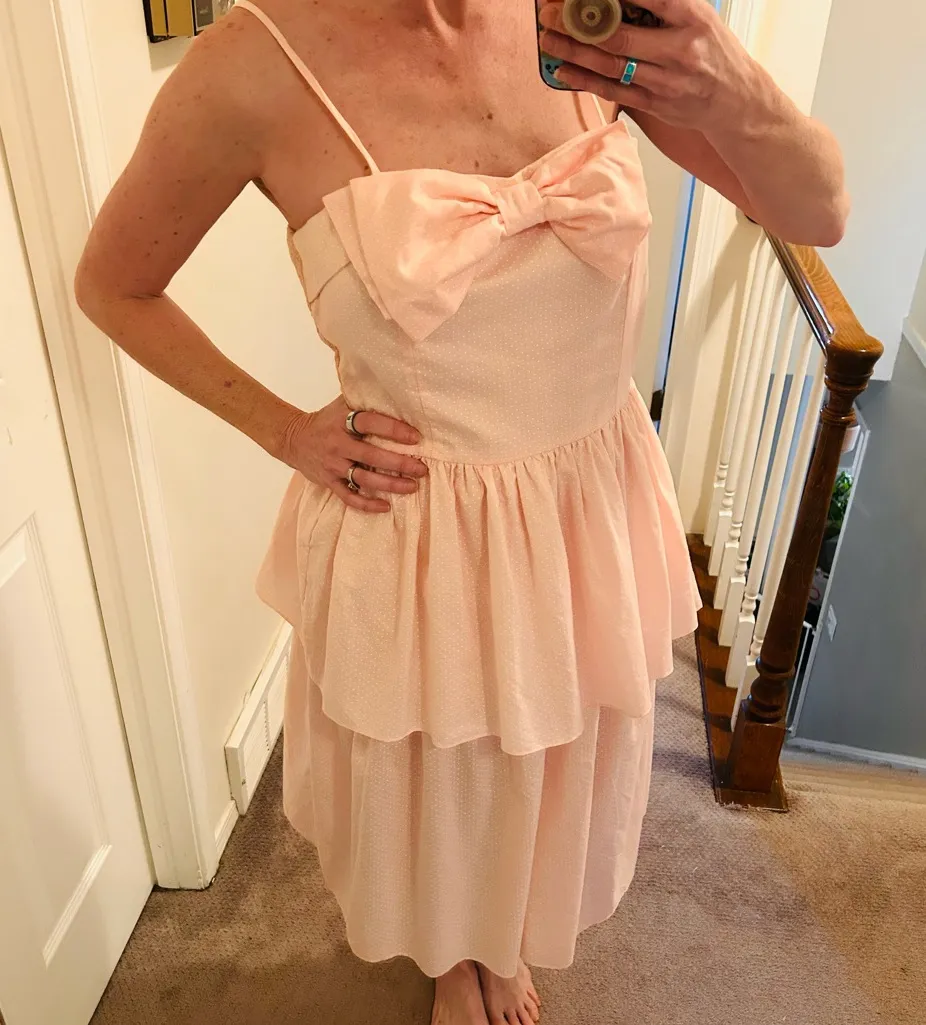 Vintage 80s Bonnie and Me pastel pink polka dot ruffled dress Size L/XL - $45 - From Midmom