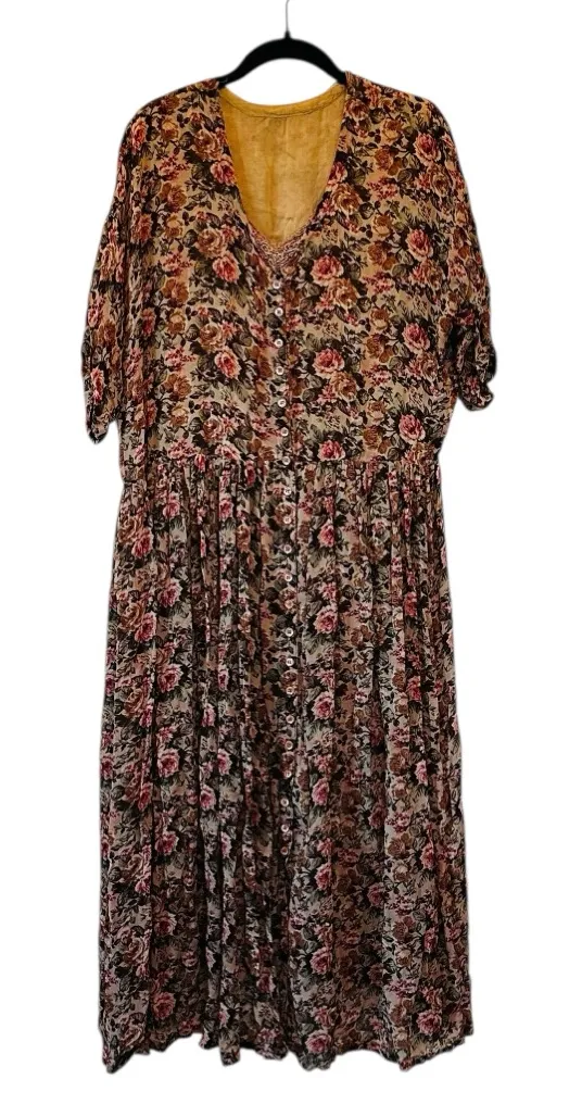 Vintage 80s Chiffon Floral Maxi Dress Whimsygoth Fairy Grunge Cottage No Size Tag Approx. XL Pit to Pit 21” Length 49” 100% Rayon Lined *some light fraying no holes Overall great condition