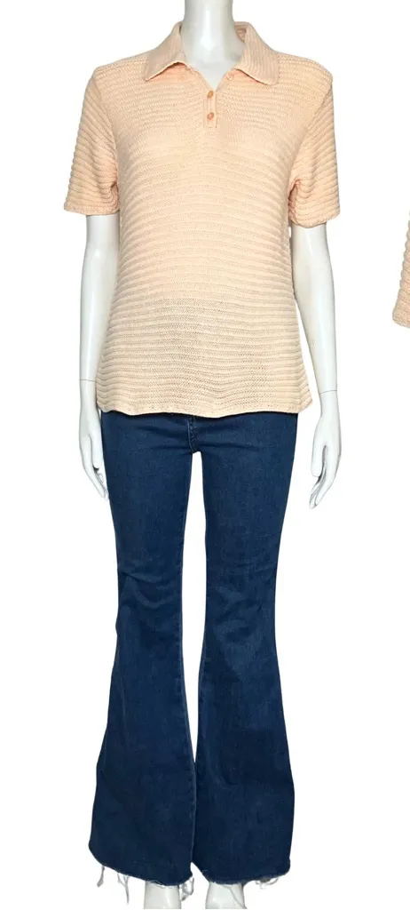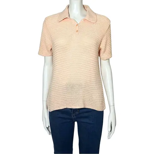 Pastel peach linen cotton blend knit short sleeve collared polo top by Liz Claiborne Lizwear from th... Show more