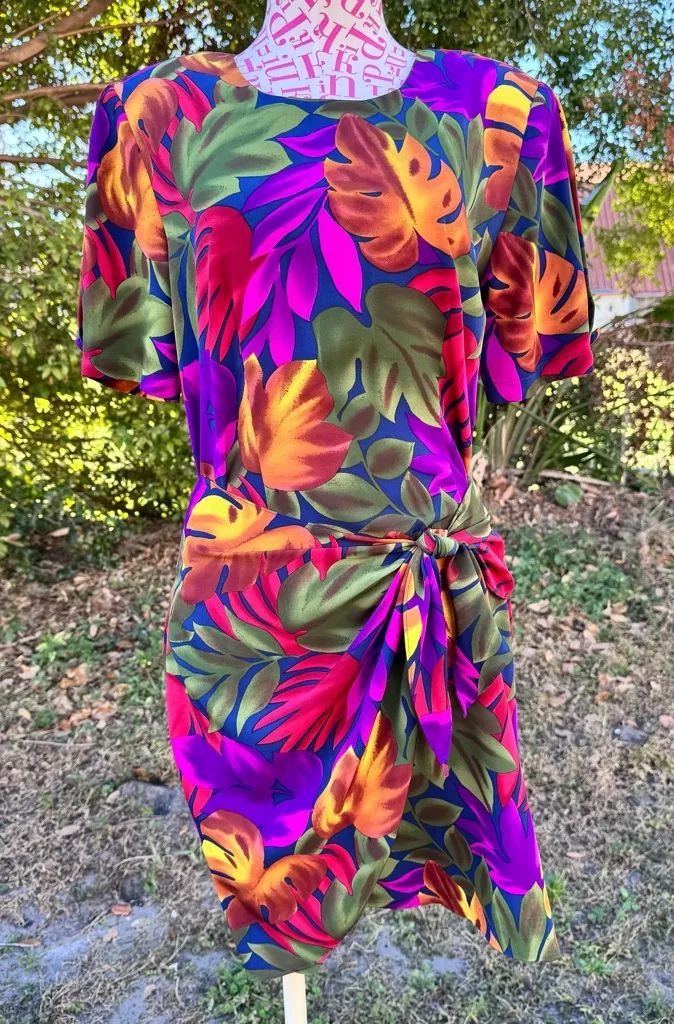 Vintage 80s Tess Dress Bright Tropical Floral Tie Waist Made Hong Kong Size 6 P, vintage preowned in... Show more