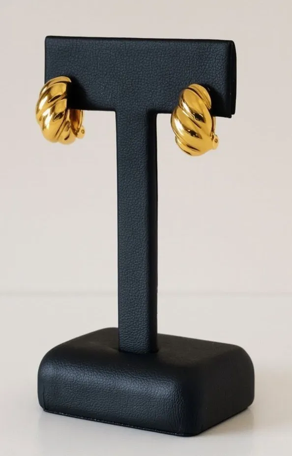 Vintage 80's Women's Gold Toned Twisty Clip on Huggie Earrings Elegant Minimalist Preppy Same or Next Day Shipping! Elevate your look with these timeless gold statement earrings. Designed with a bold, twisted dome silhouette, they exude effortless sophistication while offering a touch of vintage charm. Their polished finish catches the light beautifully, making them the perfect accessory for both elegant evenings and chic everyday wear. A refined staple for the modern jewelry collection. Good Preowned Condition!! Minimal wear from being stored with other jewelry, see photo's. Bundle and Save!! luxury hoops vintage inspired bold jewelry statement earrings classic style timeless accessory retro chic polished gold twist dome elegant gift