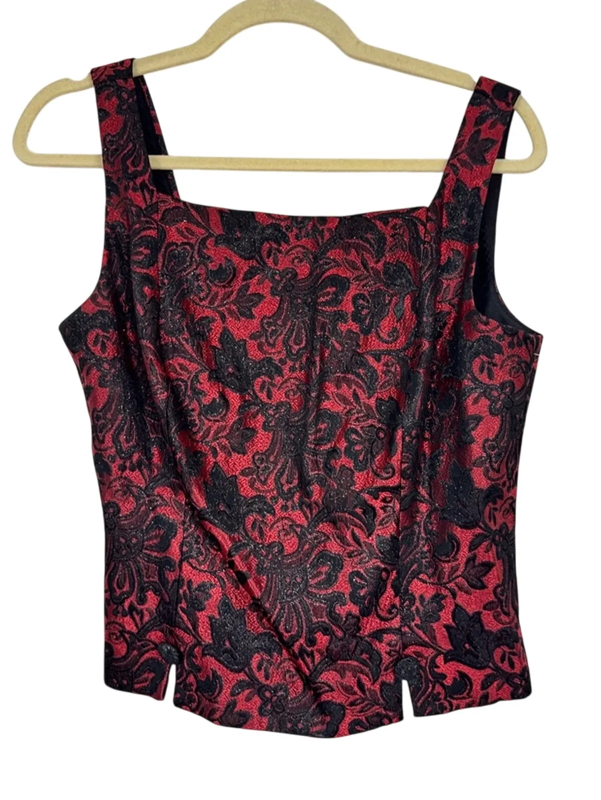 Vintage 90s Black Red Brocade Corset Style Top Womens 12 Witchy Whimsigoth Crop - $30 - From Lisa