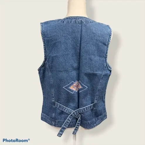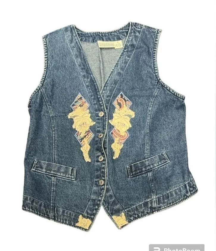 Vintage 90s Blue Jean Vest with Appliqués by Van Heusen -Size Small Smoke free home Gently used cond... Show more