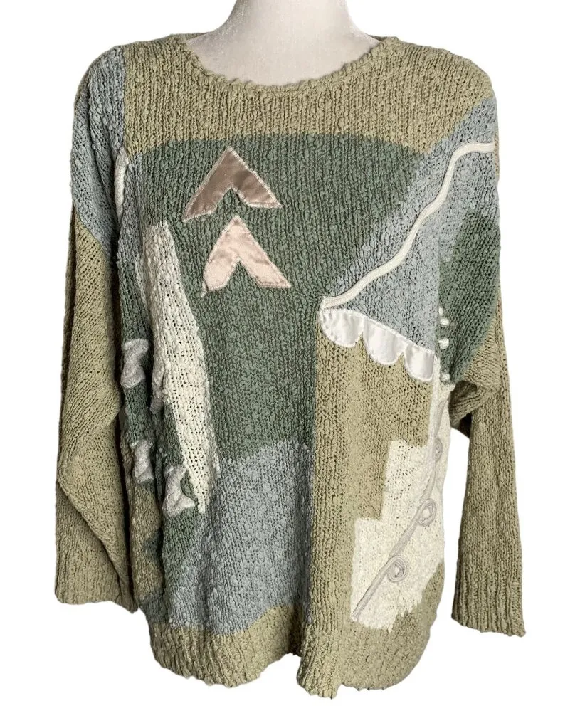Vintage 90s Boucle Pullover Sweater M Beige Loose Knit Round Neck Long Sleeves Tan Size M - $40 - From Crystal