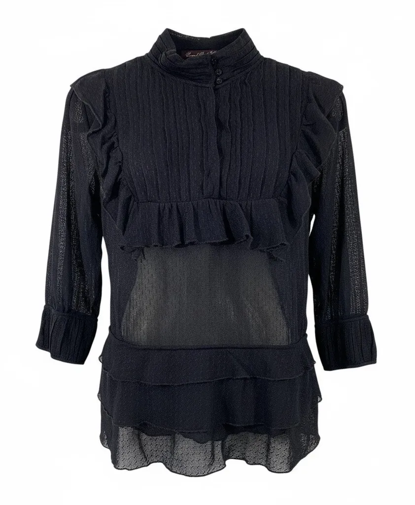 Vintage 90s Central Park West Black Lace Sheer Organza Ruffles Q/S Blouse - Size P - Excellent pre-o... Show more