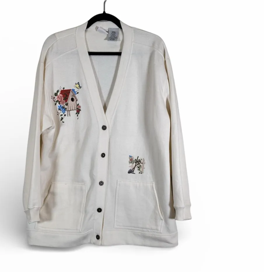 Vintage 90s Cream Birdhouse Embroidered Cardigan Sweater Womens L Grandma Core Size L - $30 - From Lisa