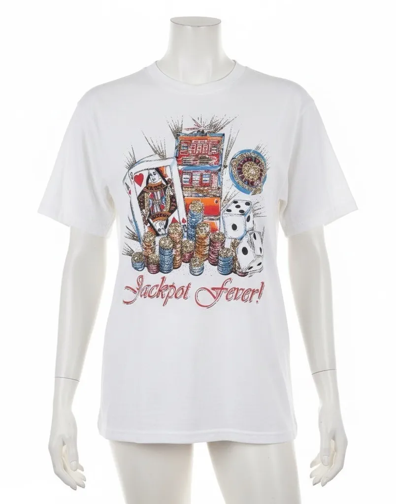 Type: T-Shirt Department: Unisex Adults Style: Basic Neckline: Crew Neck Sleeve Length: Short Sleeve Sleeve Type: Casual Sleeve Pattern: Solid Features: Stretch fun, novelty, casual, summer, streetwear, Vintage, retro, 90s, Y2K, T-shirt, street style, throwback, Made in USA, Las Vegas, Atlantic City, diamonds, hearts, vacation, cruise, souvenir, collectible, rare, deadstock, NOS, new old stock, Large Measurements are Approximate: Length 30" Armpit to Armpit 21" Some Yellow Spots, Like New. Please see photos for measurements, condition and details. Please Verify Measurements. (7716)