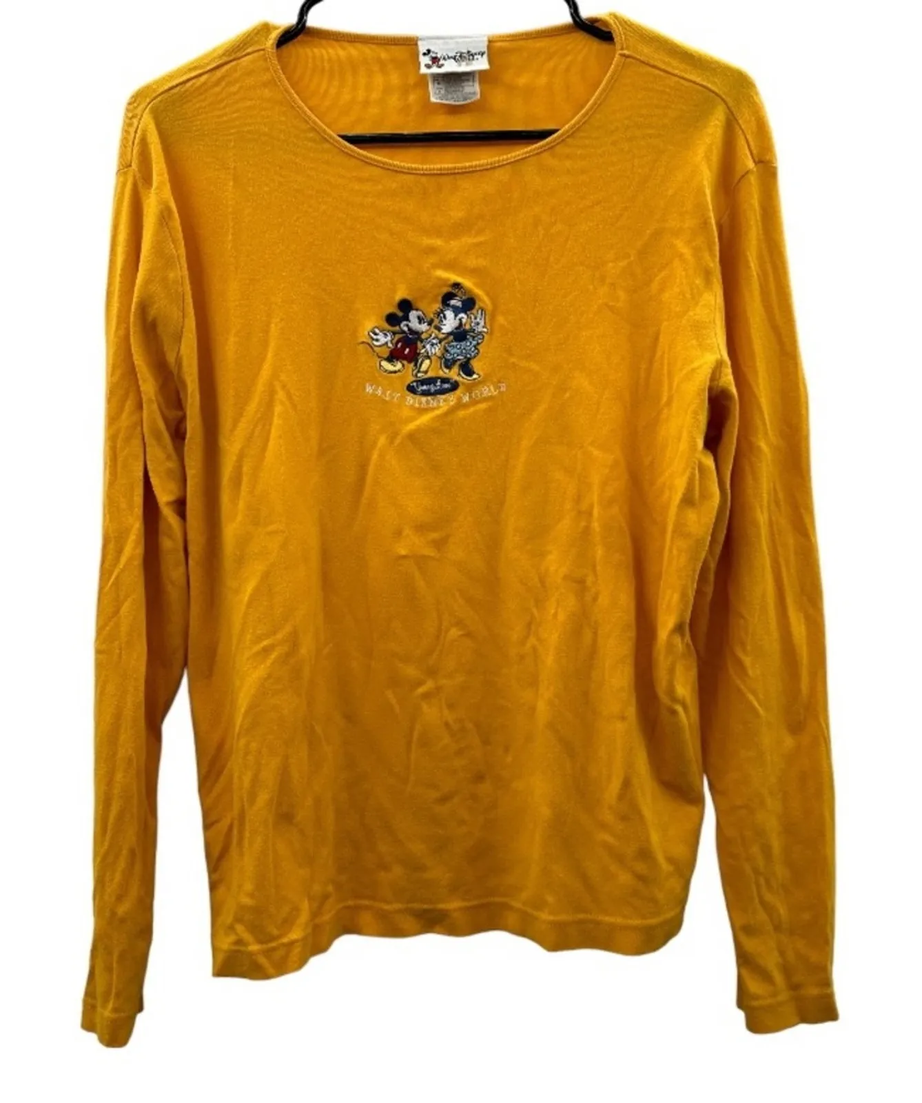Vintage 90s Disney World Mickey & Minnie Mouse Embroidered Long Sleeve Shirt Long sleeves Round neck... Show more