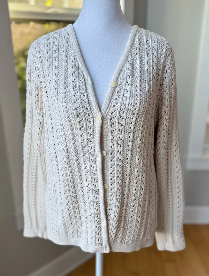 Vintage 90s 100% cotton V neck cardigan sweater by Eddie Bauer. Size Small. Excellent condition. Mea... Show more
