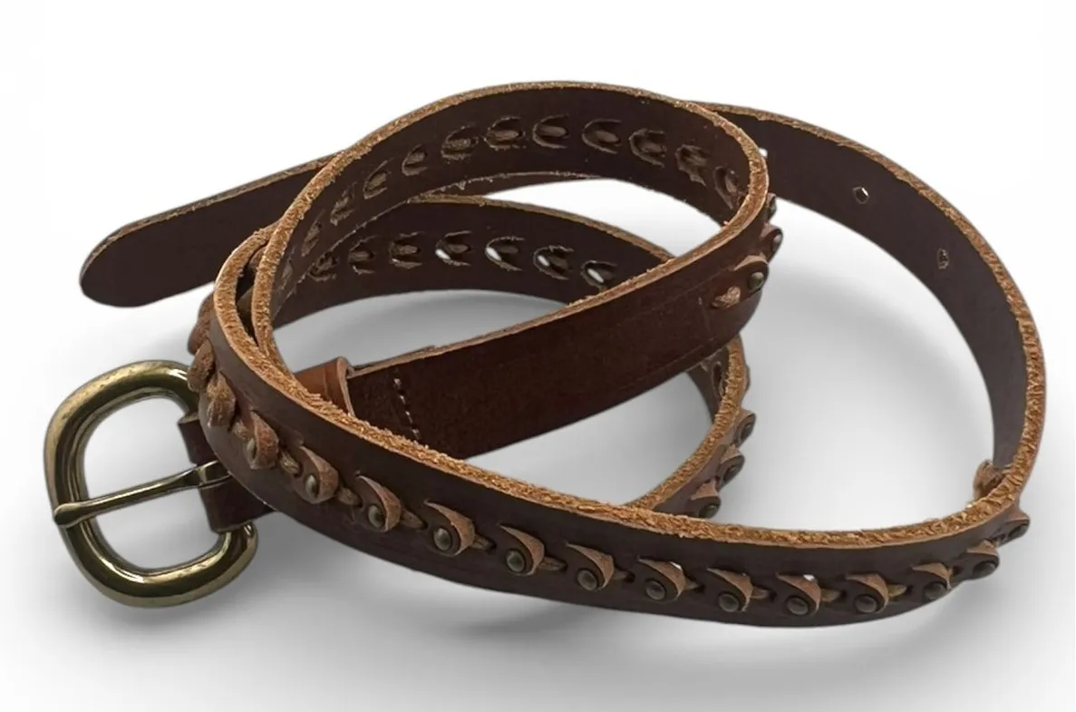 Vintage 90's Fossil women's M studded leather belt brown brass buckle - $17 - From Sourced In SoCa