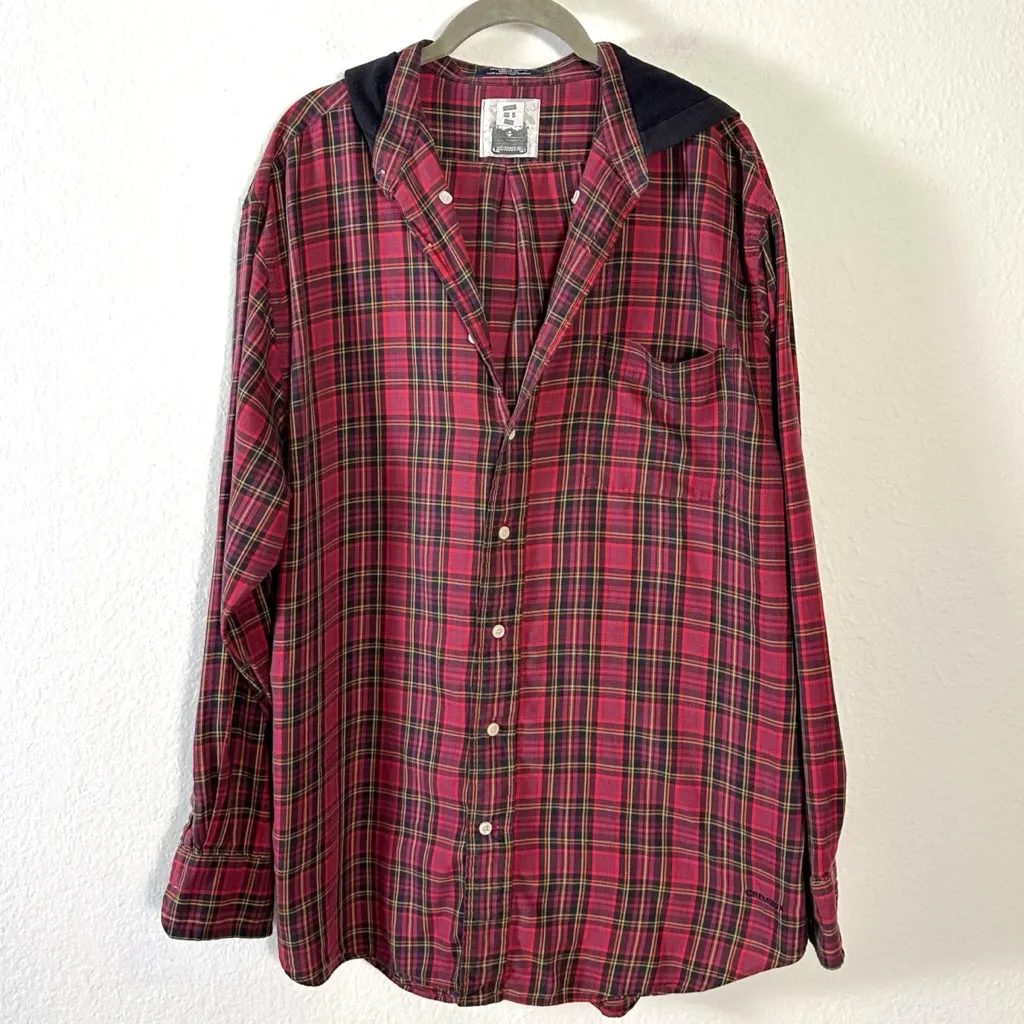 Vintage 90s Grunge Furst of a Kind Reworked Cremieux Plaid Shirt Oversized Hoodie Button Down Tar... Show more