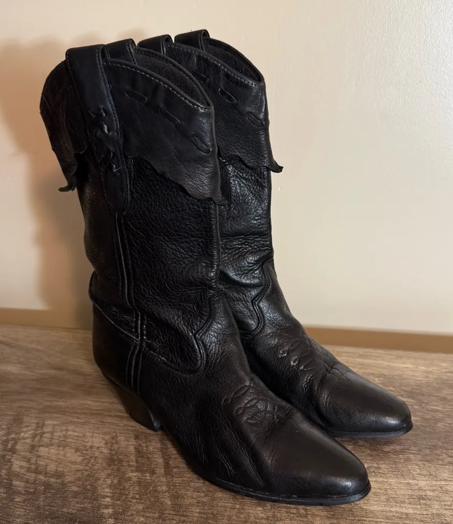 Vintage 90s Laredo Black Leather Cowboy Boots Women’s Size 5.5 USA Made Western - $50 - From Melanie