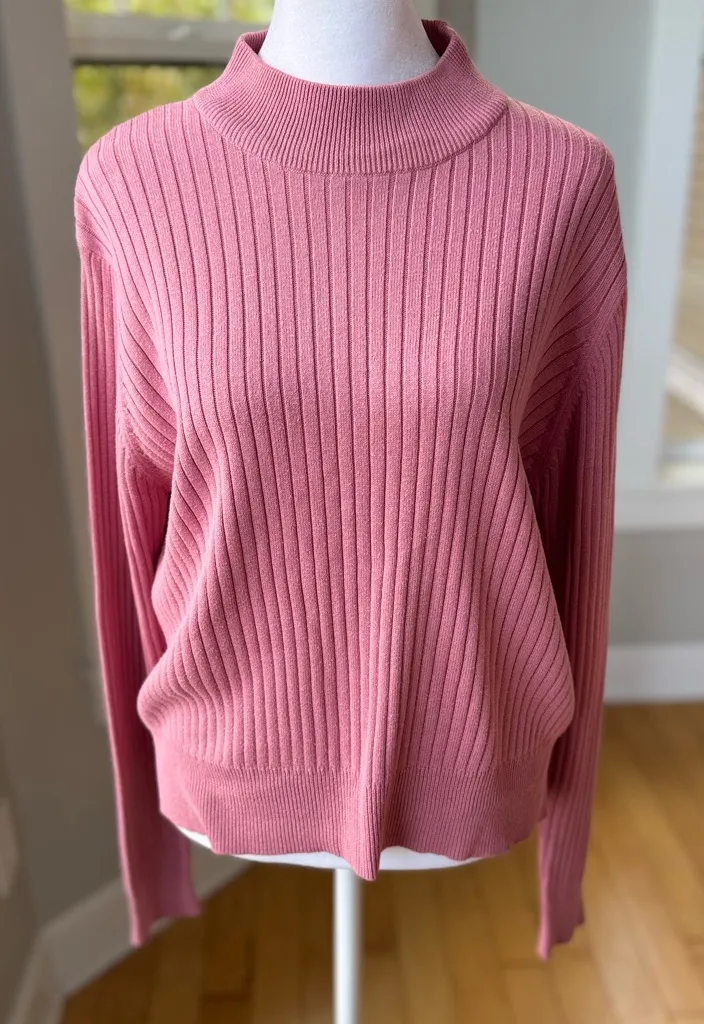 Vintage 90s Laura Scott Mauve Pink Ribbed Cotton Mockneck Cropped Sweater Large - $35 - From Katie