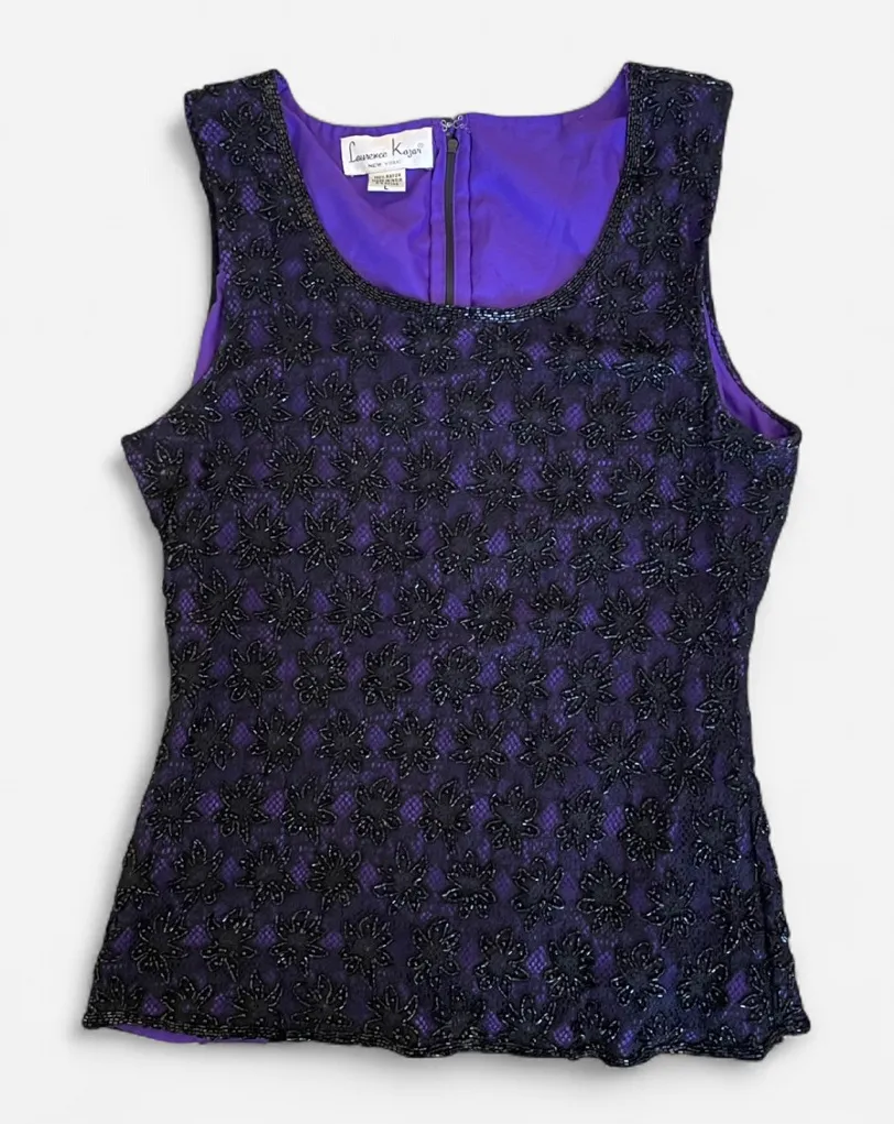 Gently used - minor pulled threads Vibrant purple lining Embellished with beads all over Mesh fishn... Show more