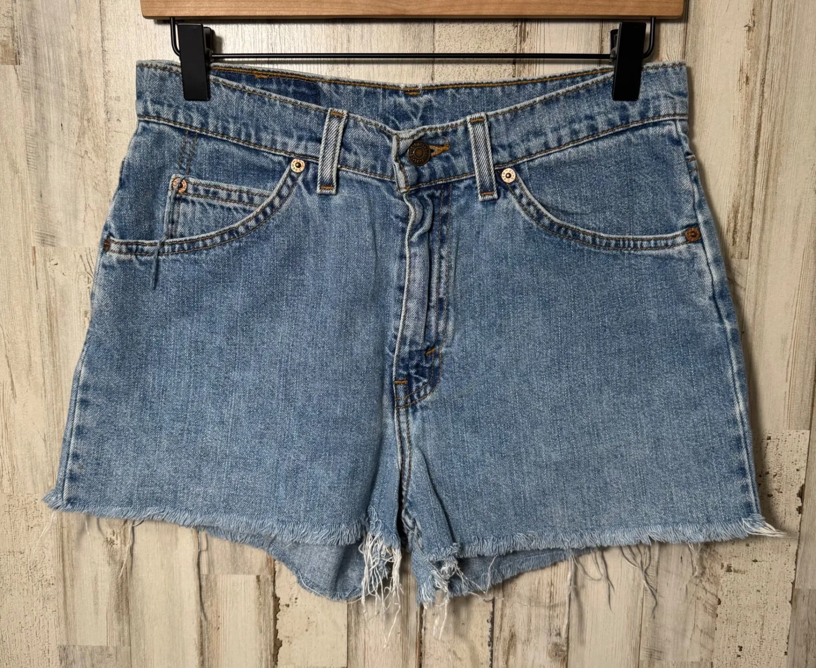 - great preowned condition. diy raw cut. 100% cotton. made in usa. size 7 or medium. from 1997. waist: 14.5" rise: 10.5" Inseam: 2" leg opening: 11.5" hips: 19.5" -all flaws are pictured and/or described however please expect normal secondhand wear on all preowned items.