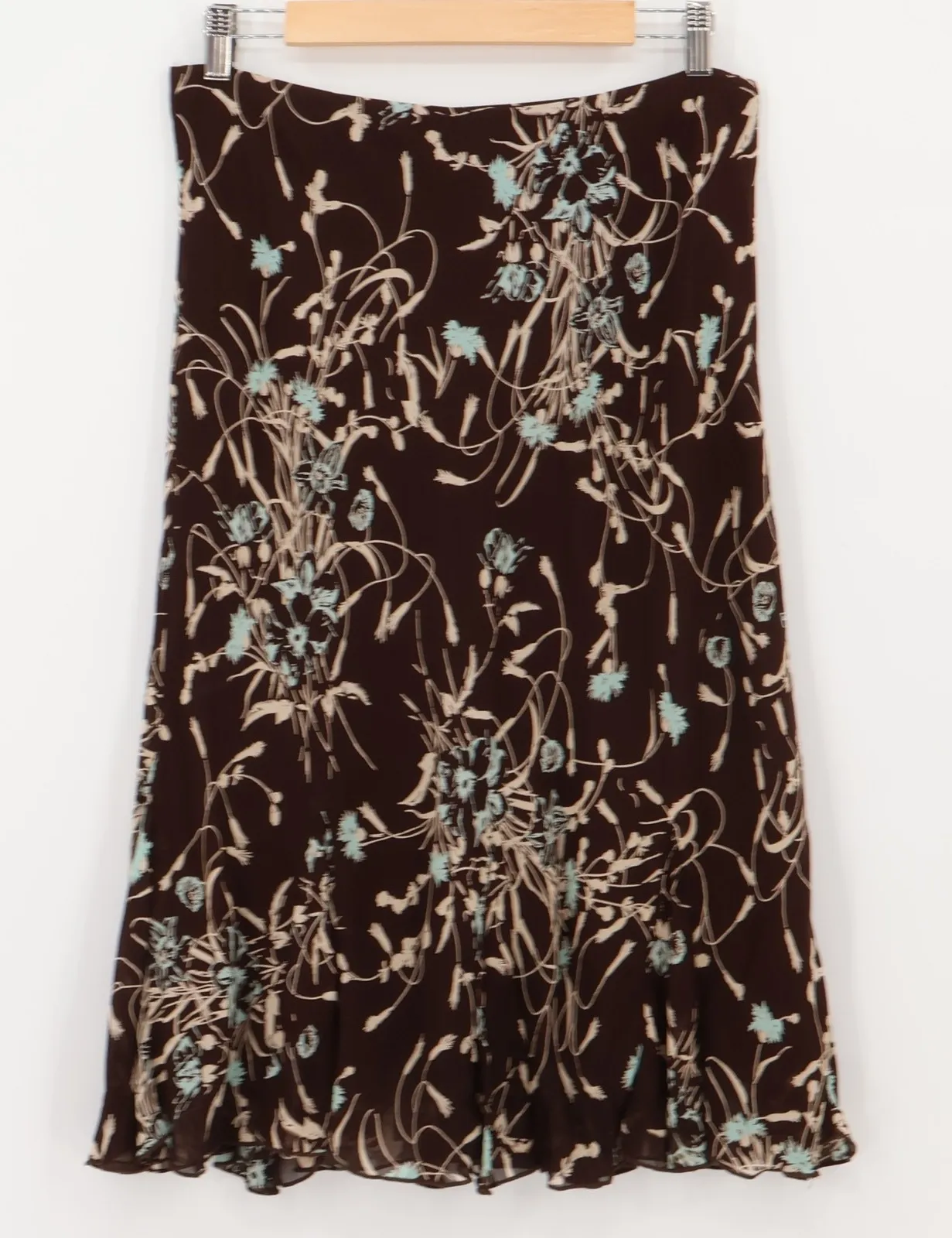 Beautiful vintage Lily midi skirt made in the USA, featuring a soft chocolate brown background with... Show more
