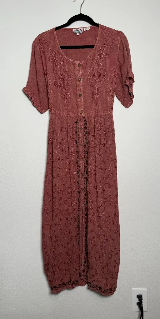 Vintage 90s Long Bohemian Indie Long Dress Pink Size L - $40 - From Lana